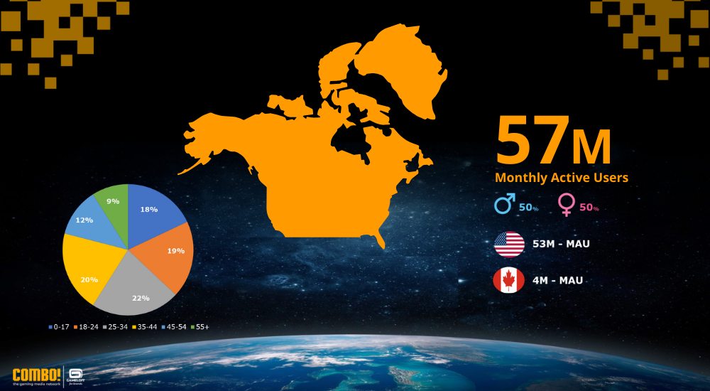 In Latin America, COMBO! reaches over 203 million Monthly Active Users (MAU), with Brazil and Mexico leading the way. Approximately 28% of players are under 18, reflecting a mobile-first, youth-focused gaming culture. Brands aiming to connect in this region should focus on dynamic mobile experiences, social engagement, and content that resonates with young, community-driven players.