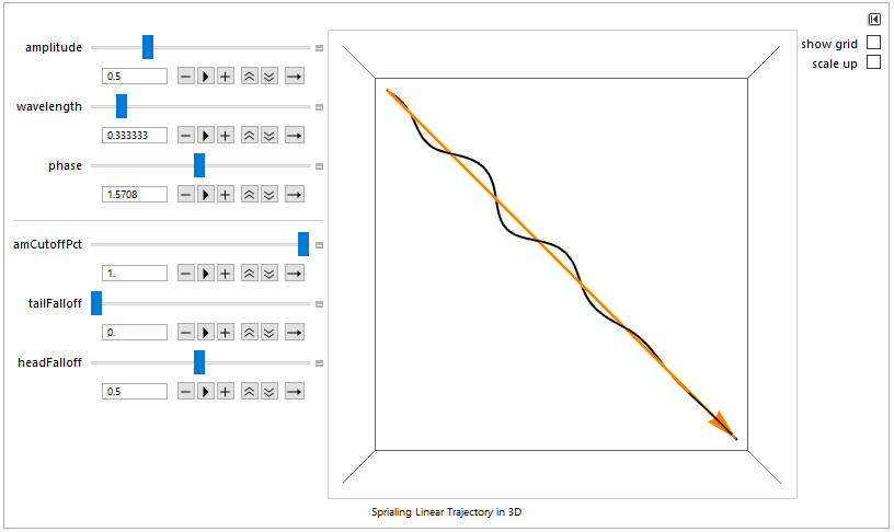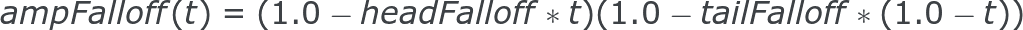 One last amplitude modification, which we found useful, was the addition of a clamped sinusoidal scale factor, which further smoothed the start and end of the trajectory. The clamping factor was exposed to the designers as an amplitude cutoff percentage parameter: