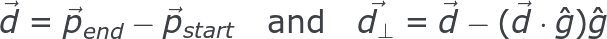 Here the magnitude of gravity is g ~= 9.8m/s^2, and later we will also use g-vector and g-hat to represent the directed and unit-length vectors for gravity, respectively. The expressed position function already is in parametric form, which is what we need. We specify a starting point (pstart) and a velocity vector (v0) and can express the path parameterized with respect to time, t.
