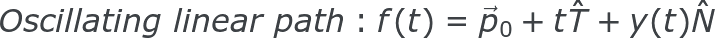 Also, note that we add the oscillation as a displacement in the orthogonal direction of the linear trajectory path. Expressed in this way, the equation holds both in 2D and 3D. For the 2D case, we obtain the normal direction by applying a 90Degree counter-clockwise rotation to the tangent vector. In 3D, a choice has to be made depending on the desired effect. For top-down games, it may be best to apply the fuzziness effect in a plane parallel to the ground. In other cases (e.g., view aligned effects, or 3D shooter scenes), other choices can be meaningful, too.