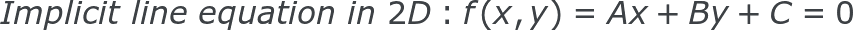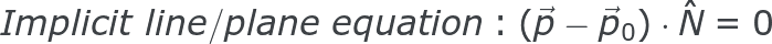 (Comment: The above is an alternative implicit equation for a line in 2D. Note, that in 3D the equation no longer describes a line, but a plane, with normal N)