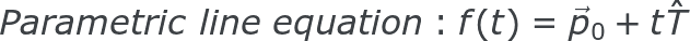 As noted above, we will be using parametric models. Another side advantage of parametric forms is that they do not depend on the dimensionality of the space, in which you are working. A parametric line connecting two points in space has the exact same form regardless of whether these points are in 2D, 3D, or any other dimension for that matter. Because of this, we will be able to do most of our work in 2D and then easily apply these results to 3D scenes.